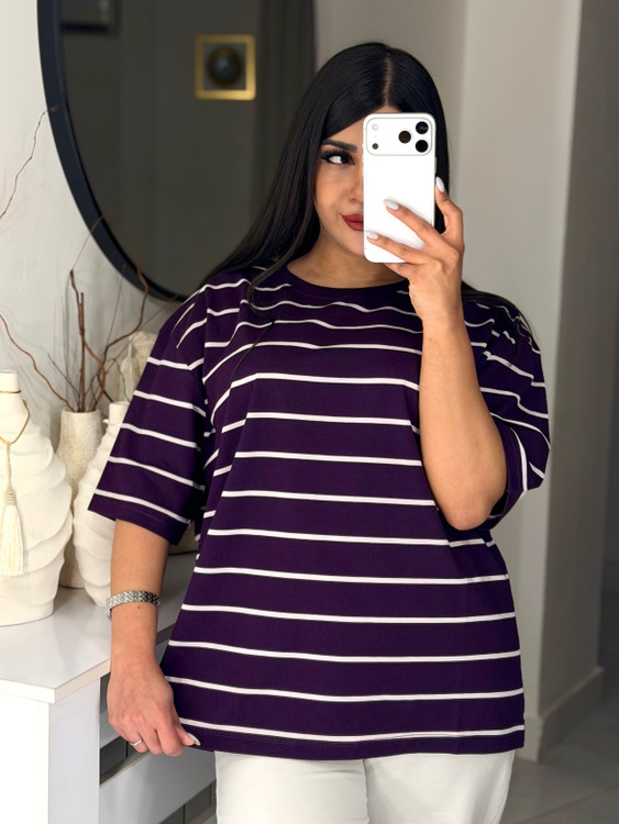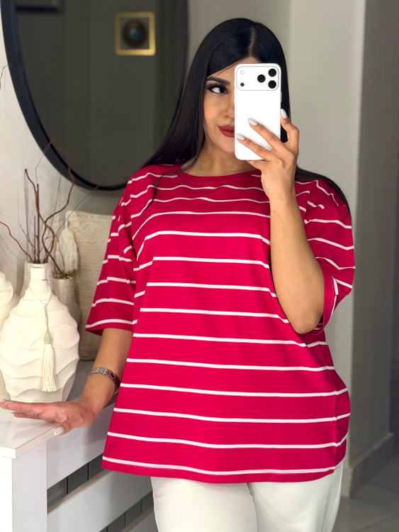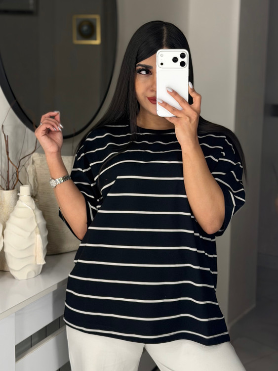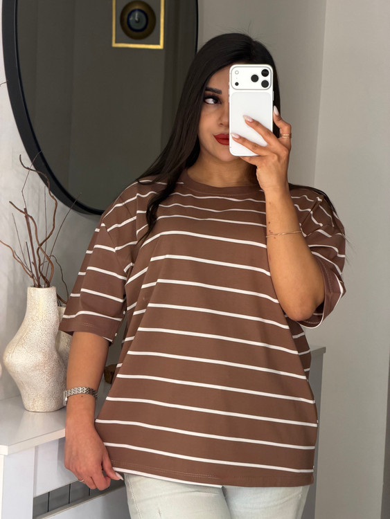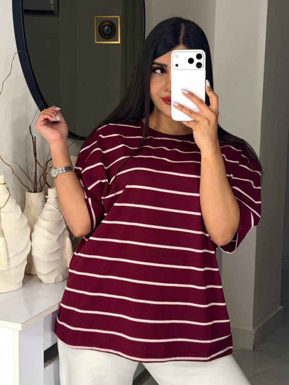 تیشرت باکسی طرح راه راه ساده 💫