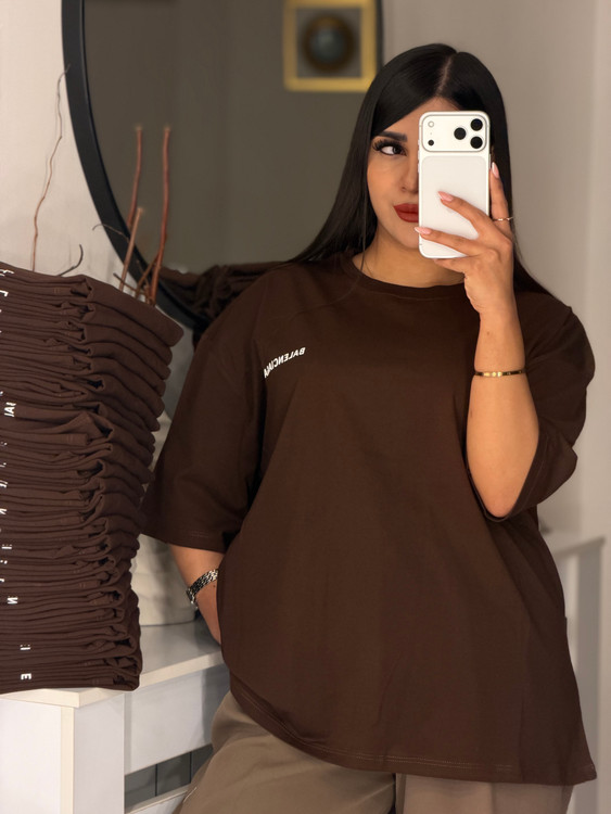 تیشرت باکسی موکا طرح 🤎BALENCIAGA🤎