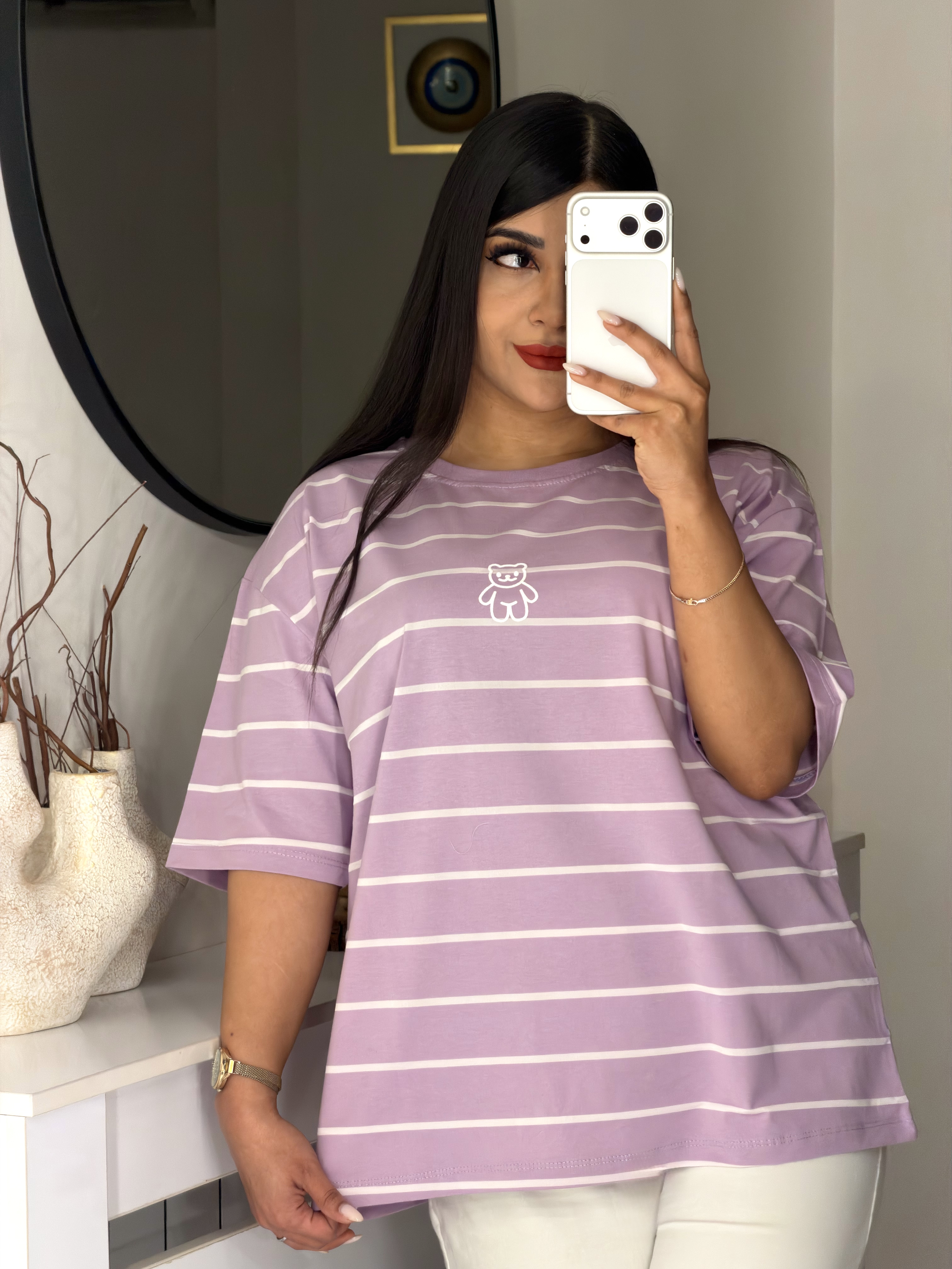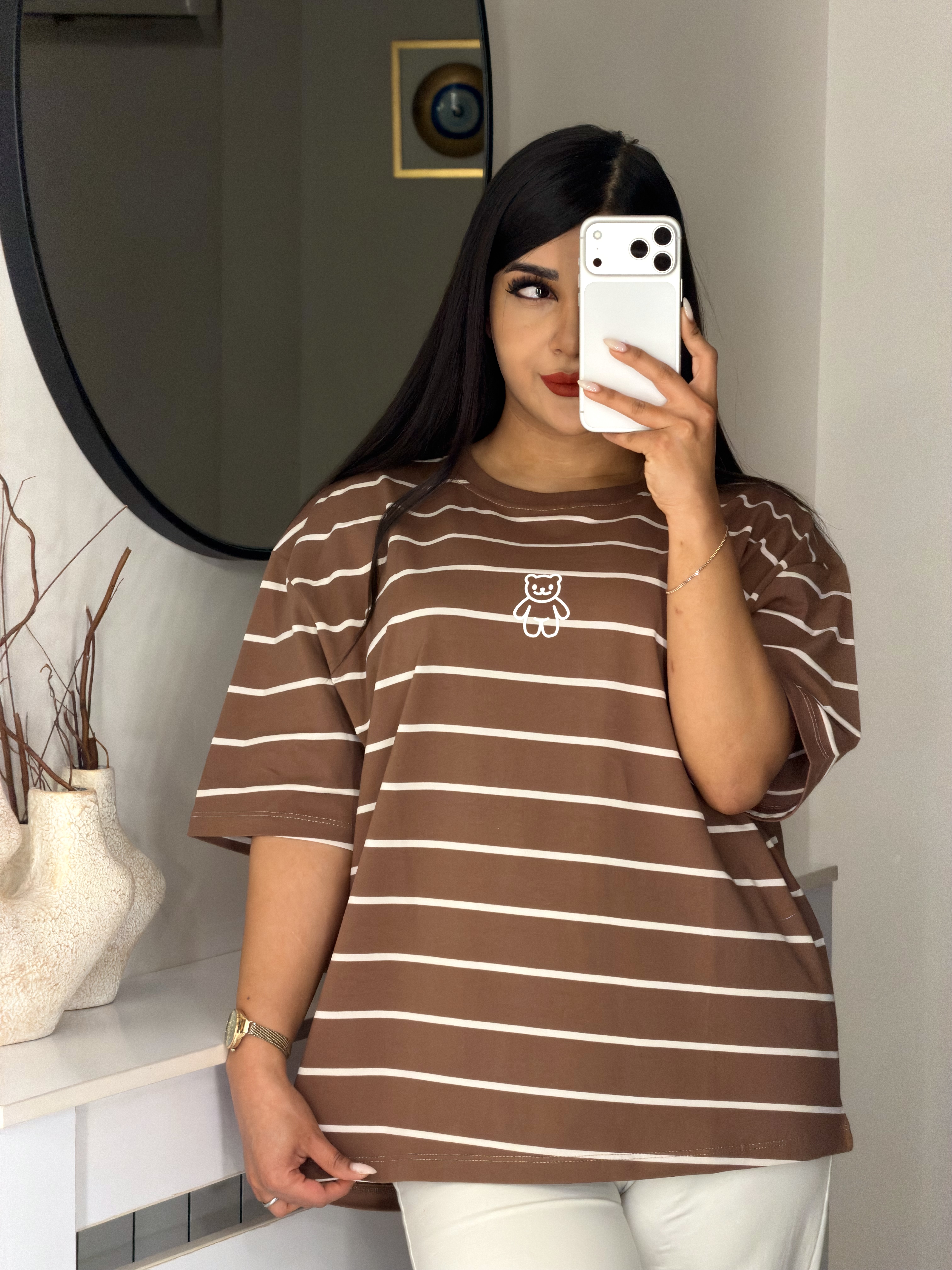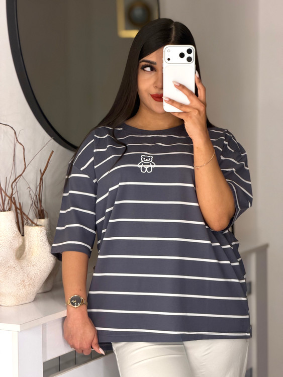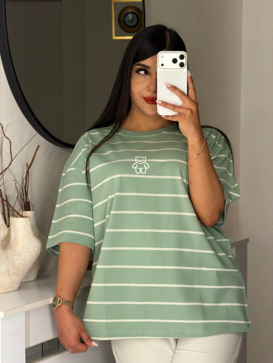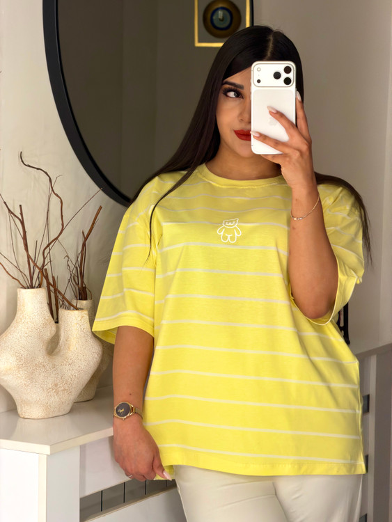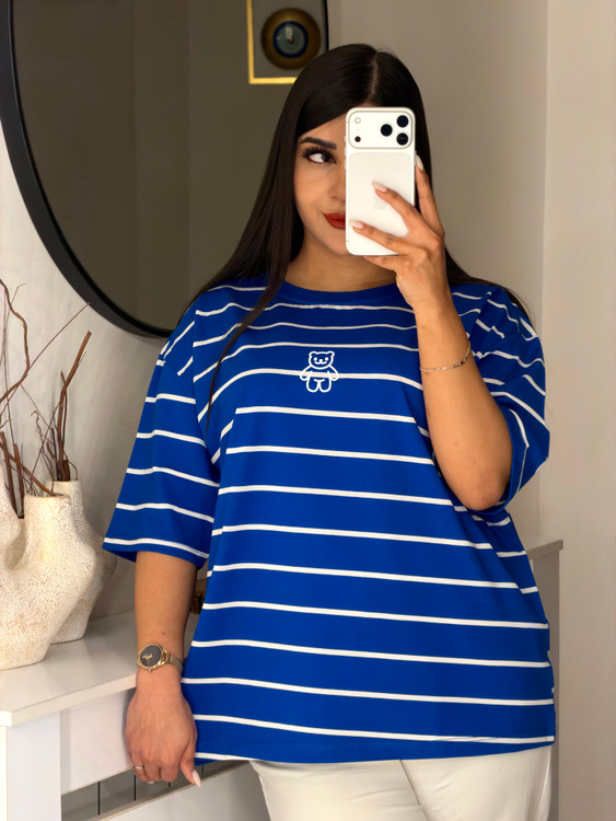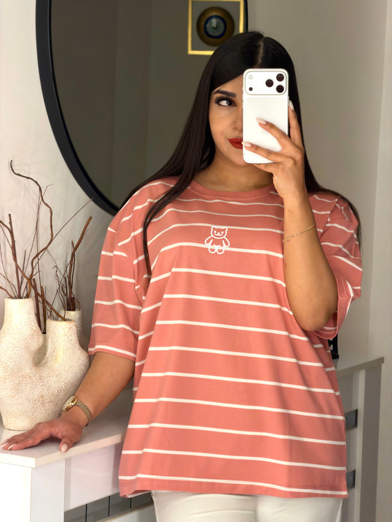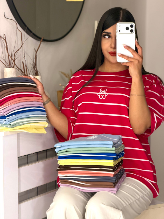 📍تیشرت باکسی راه راه طرح تدی 🧸