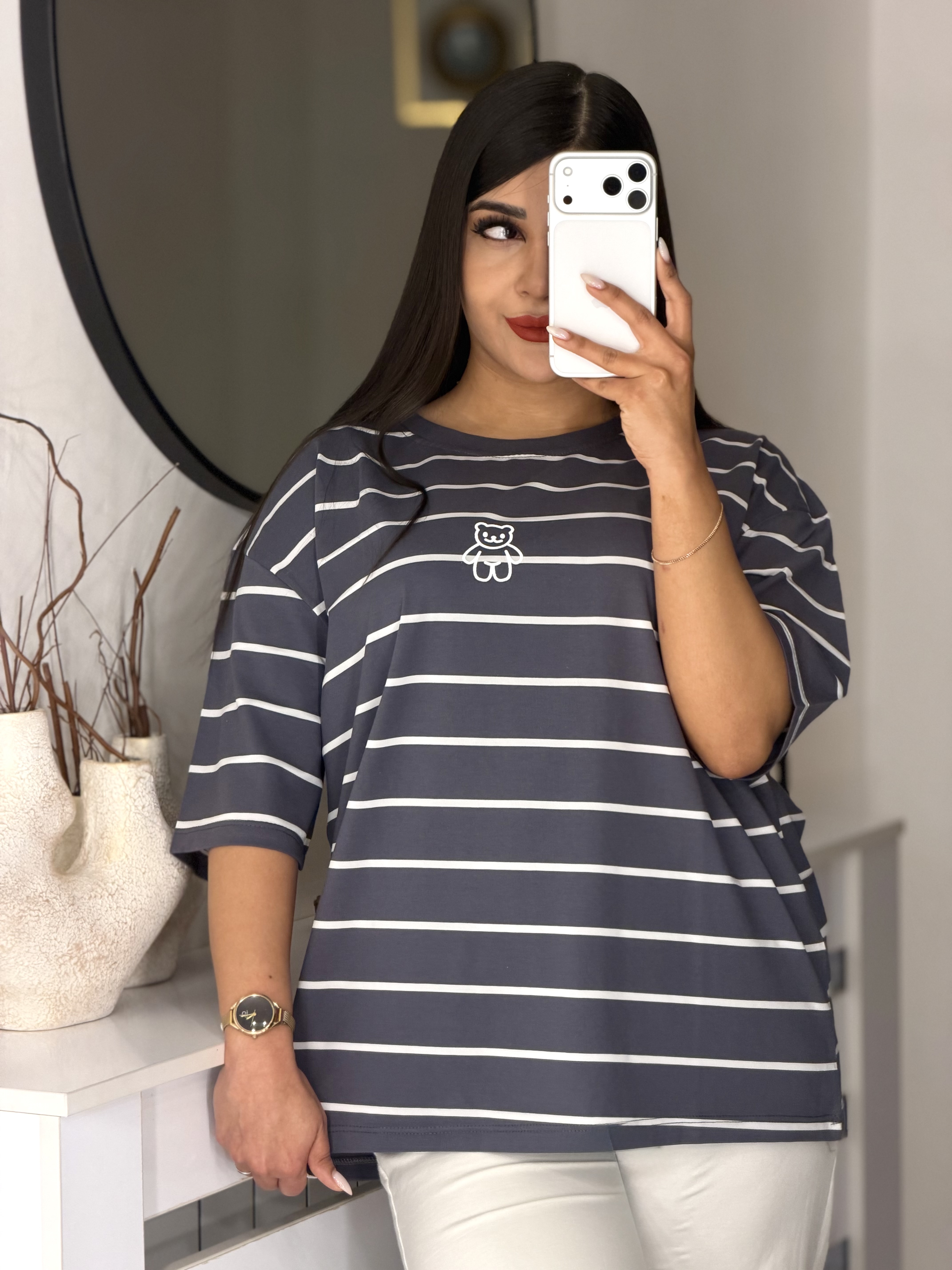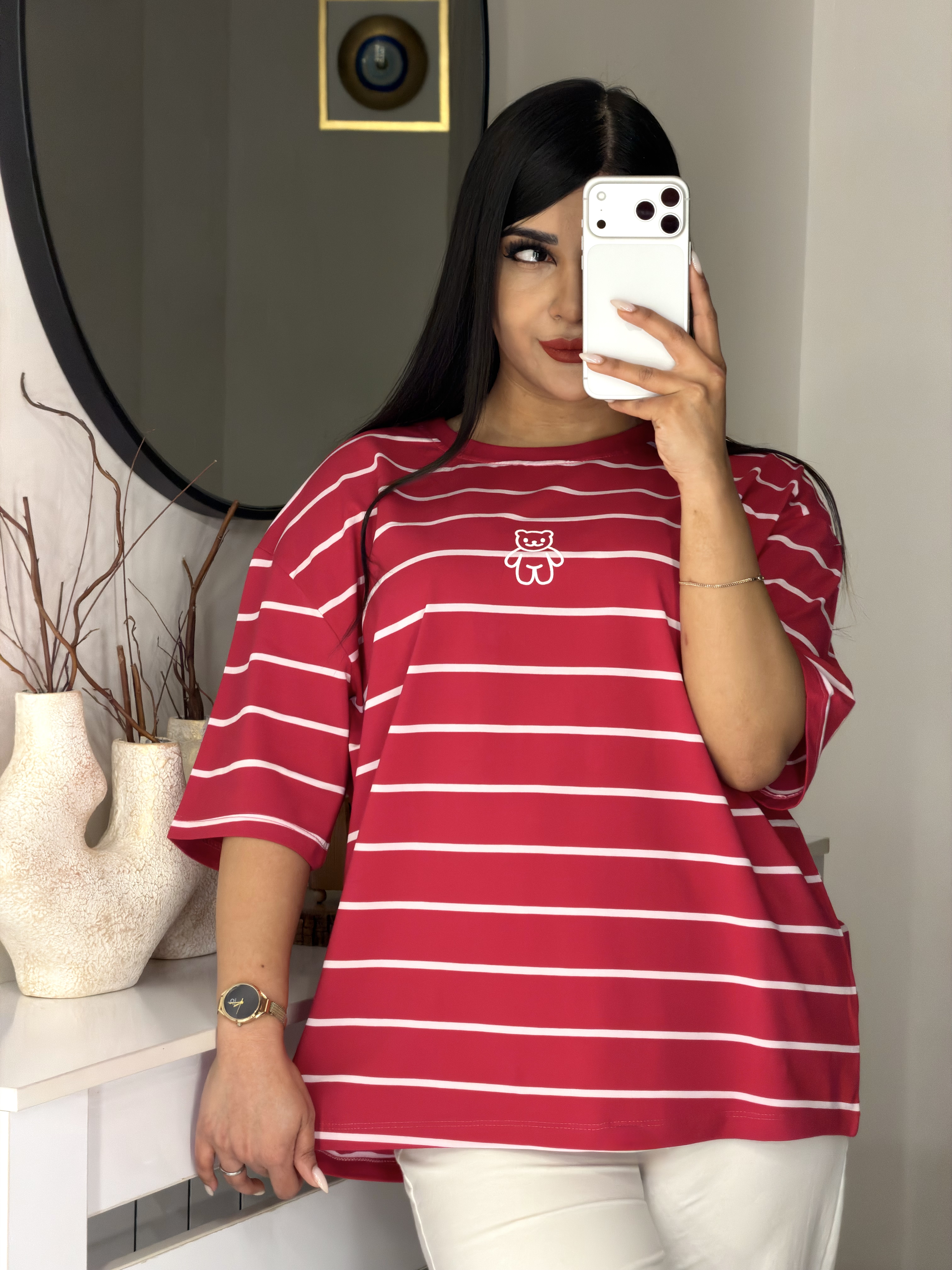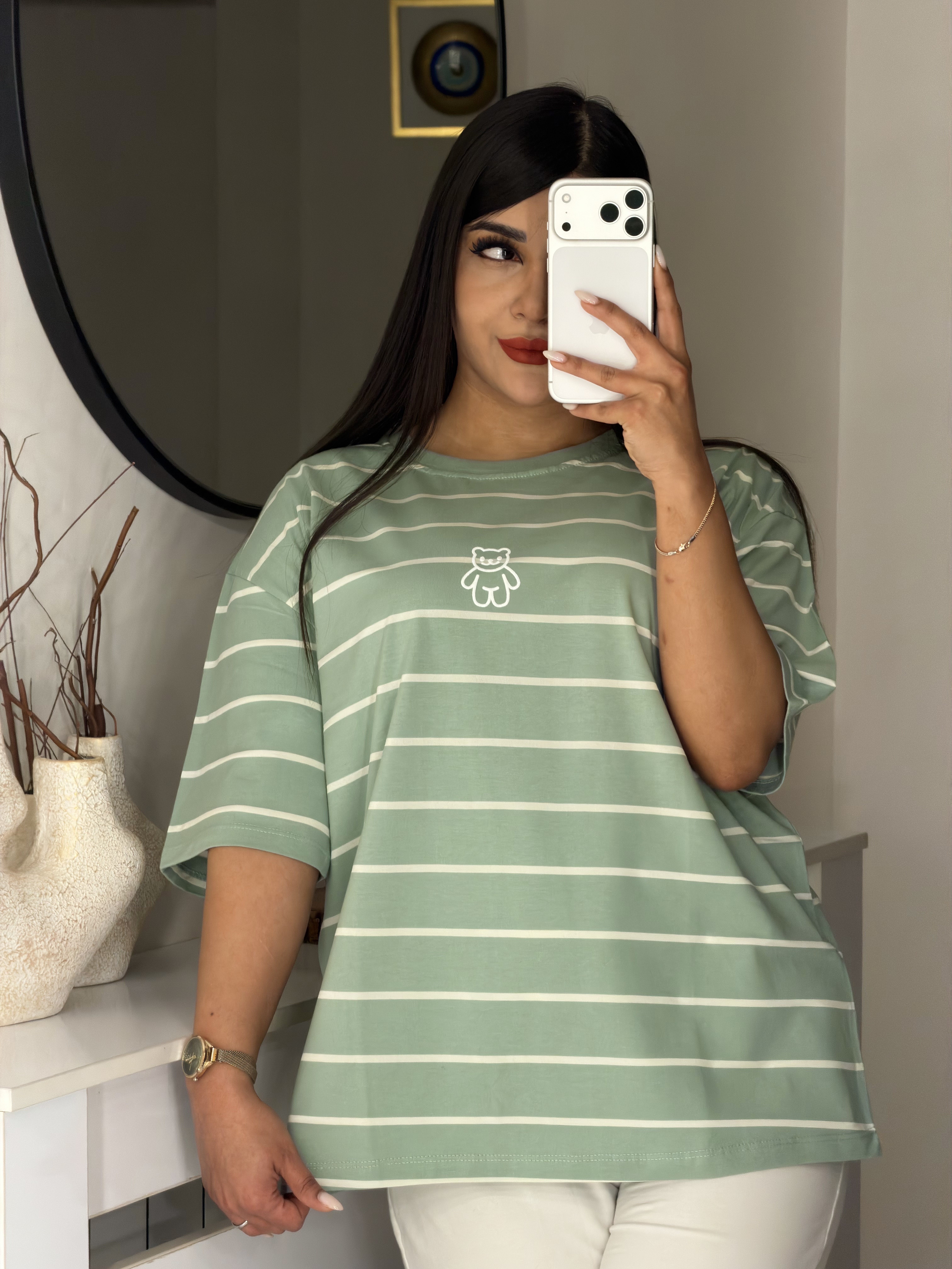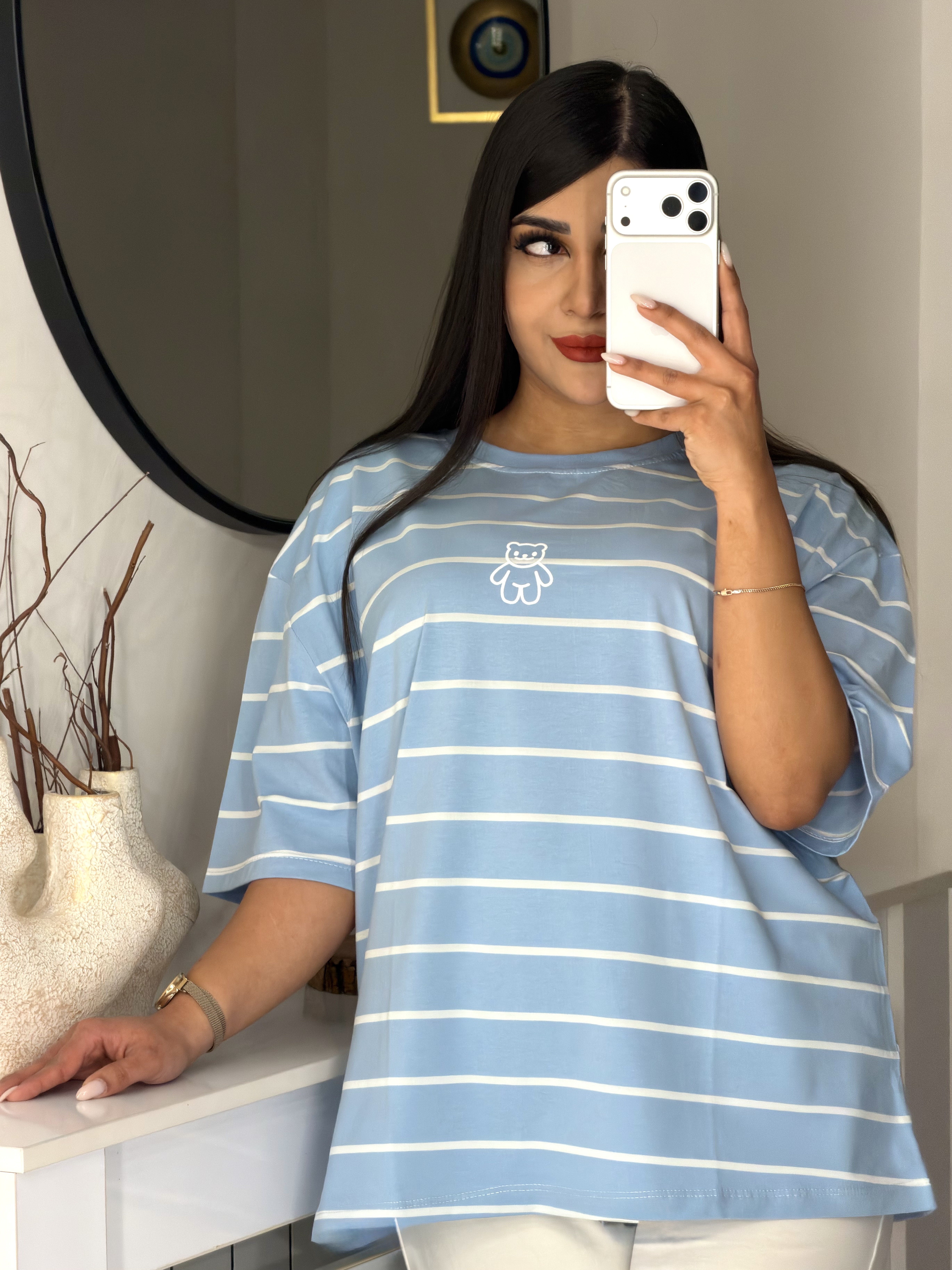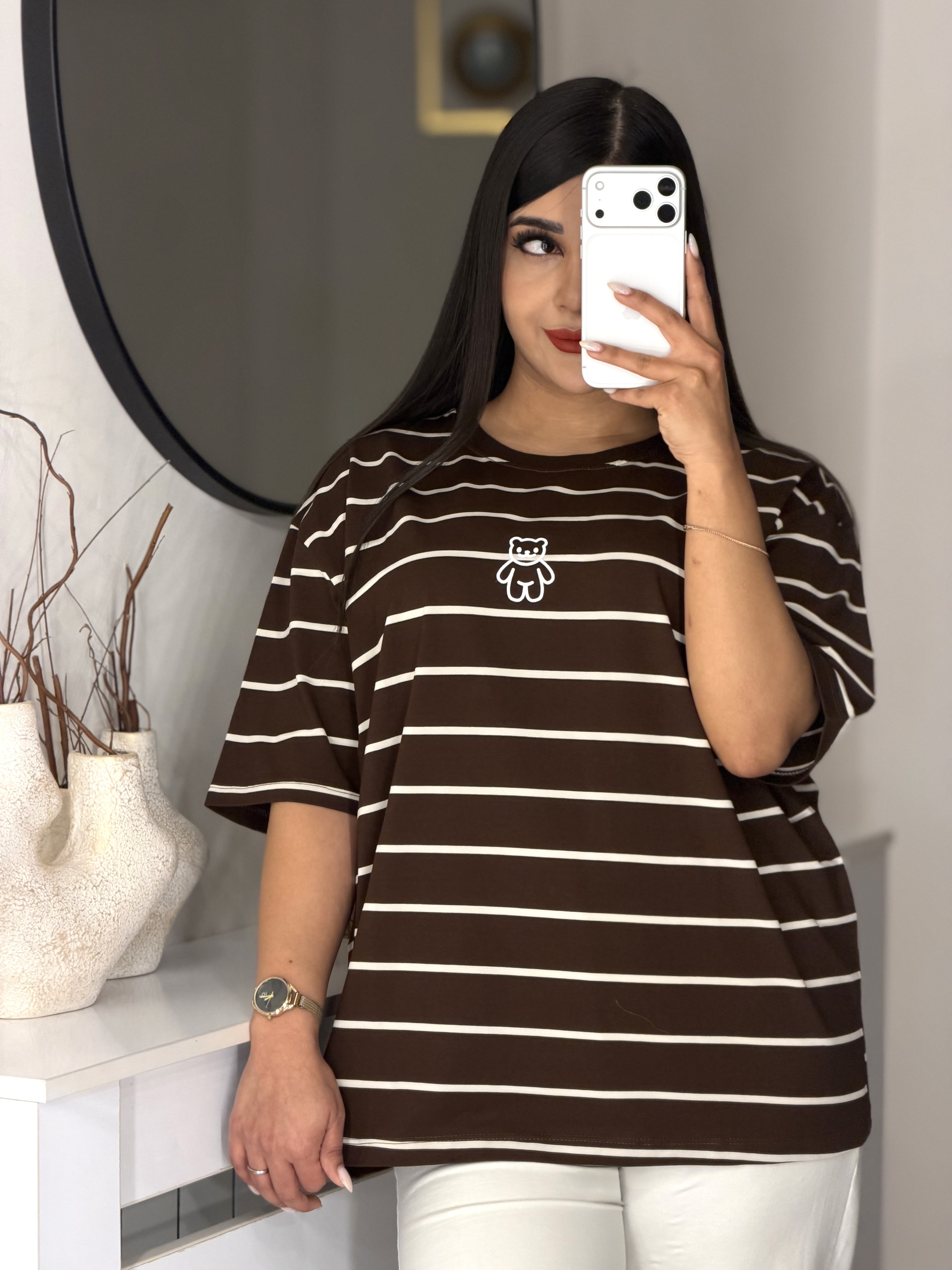 📍تیشرت باکسی راه راه طرح تدی 🧸